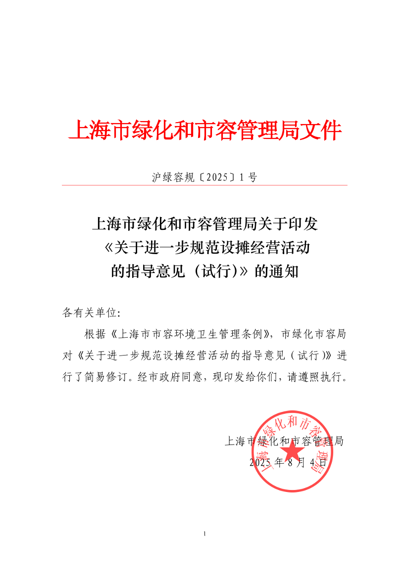 根据《上海市市容环境卫生管理条例》,市绿化市容局对《关于进一步规范设摊经营活动的指导意见(试行)》进行了简易修订。经市政府同意,现印发给你们,请遵照执行。