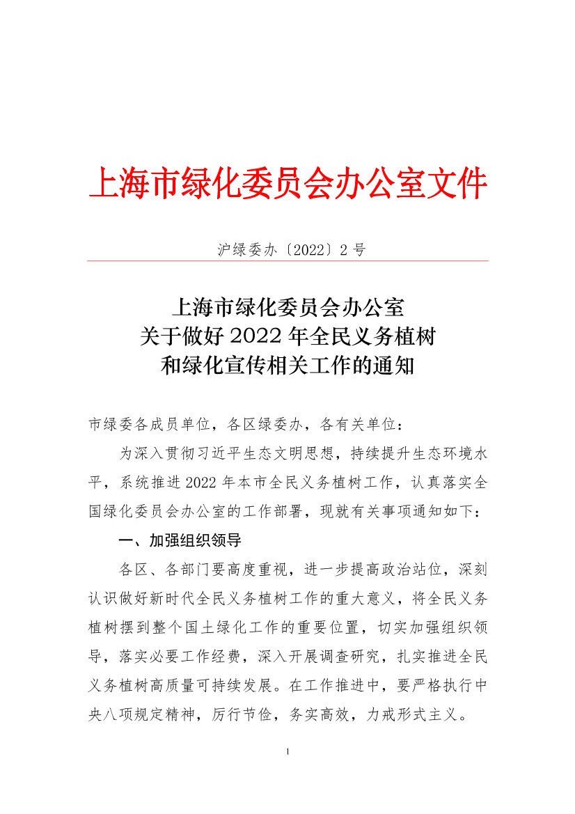 为深入贯彻习近平生态文明思想,持续提升生态环境水平,系统推进2022年本市全民义务植树工作,认真落实全国绿化委员会办公室的工作部署,现就有关事项通知如下: