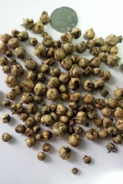 巴西酢浆草的鳞茎很有特点——外皮像竹笋一样包在一起,上面有精致的条纹。盆栽时,这些鳞茎可以在盆里长满,这是因为它是为数不多拥有匍匐茎来无性繁殖的种类。顺带提一句,巴西酢浆草开花是出了名的晚,经常在4-5月才抽出长长的花茎,开出一簇一簇的小花。鳞茎形态和匍匐茎也是将真假巴西酢浆草彻底分开来的特征。