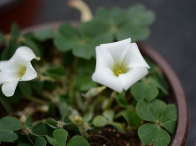 剩下的巴西酢浆草(白巴西酢浆草、黄巴西酢浆草)自然是假巴西酢浆草,虽然它也来自于巴西,原因是它没有匍匐茎,叶子无光泽,花茎极短,而且一茎一朵,远远看着甚至给人一种芙蓉酢浆草的错觉,鳞茎外皮也带着大量的纤维,更像蝴蝶叶酢浆草O.perdicaria。这显然不能跟巴西酢浆草归为同一物种,那它究竟是什么呢?经笔者初步考证,目前没有完全符合它形态的物种,极有可能是早期植物猎人采集并将它带到园艺界,然后简单的用地名巴西加颜色标记它们,而何时专家学者给它一个正式的名称还未可知。