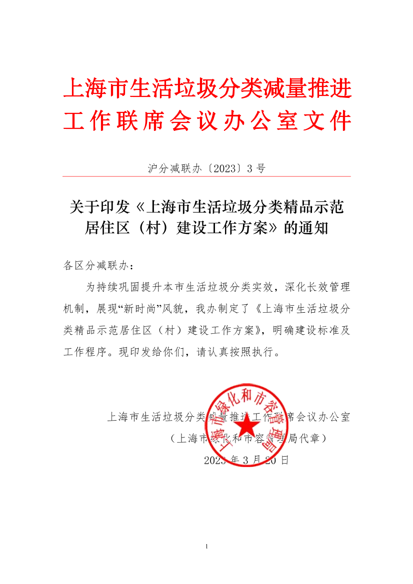 为持续巩固提升本市生活垃圾分类实效,深化长效管理机制,展现“新时尚”风貌,根据《上海市绿化和市容管理局关于印发〈上海市绿化和市容管理局(上海市林业局)2022年工作总结和2023年工作要点〉的通知》(沪绿容〔2023〕1号),本市决定开展生活垃圾分类精品示范居住区(含行政村,以下简称居住区)建设工作。为明确建设标准及工作程序,指导各区推进相关工作,特制定本方案。
