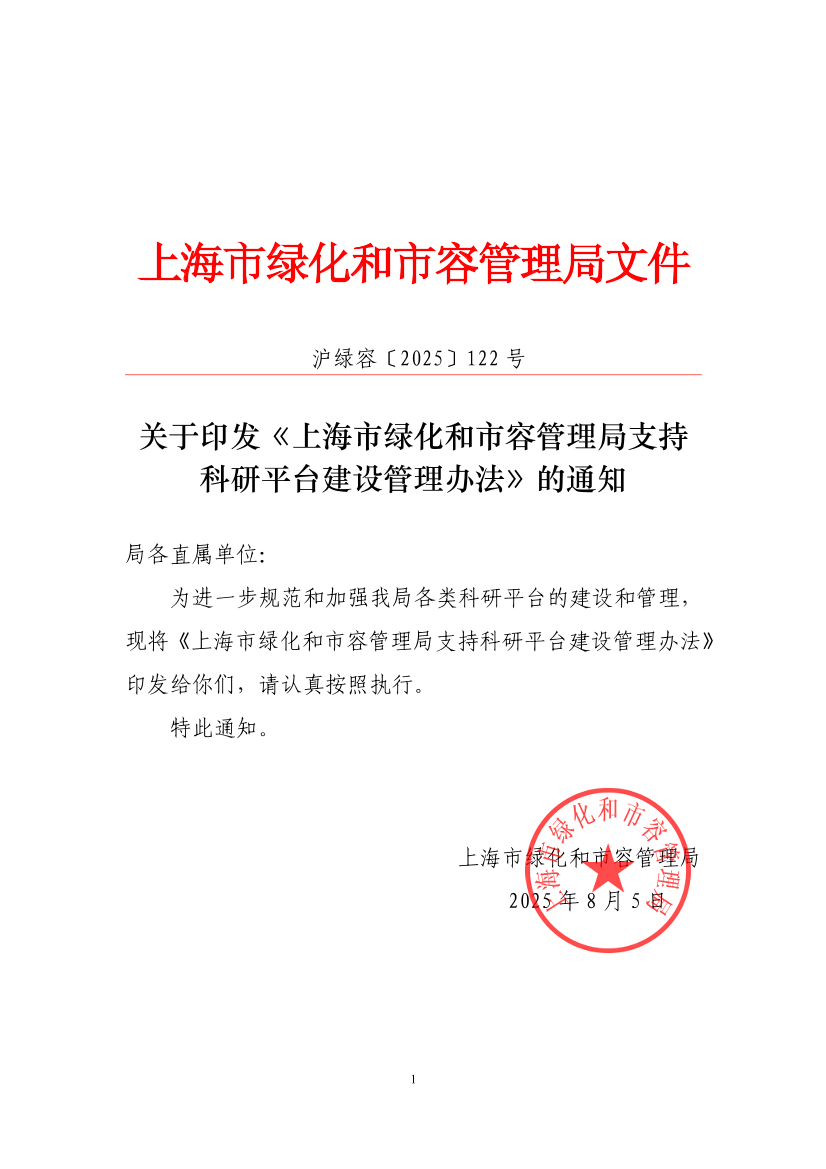 为进一步规范和加强我局各类科研平台的建设和管理,现将《上海市绿化和市容管理局支持科研平台建设管理办法》印发给你们,请认真按照执行。
