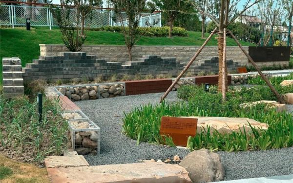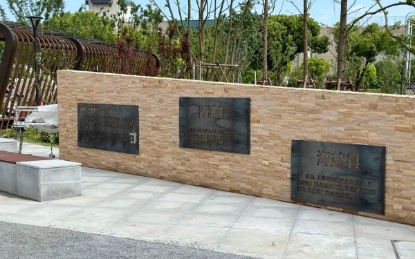 5.“卫城记忆”花园。金山卫,被誉为“江南第一卫”,是一个历史悠久的地方,其古卫城城市格局在卫城记忆花园得到了生动的展示。通过石板铺装和地刻,游客可以追溯金山卫的历史文化进程。此外,古海塘砖的室外展示和石笼木桩的还原,不仅让人们得以近距离感受海塘文化的魅力,也体现了对历史遗产的尊重和保护。金山卫文化公园还采用了现代的海绵城市设计理念,通过建筑外排水、道路广场自然坡度等措施,实现了雨水的收集与净化。