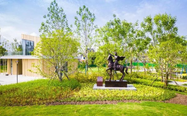 6.瓦氏夫人雕塑。绿地中央的瓦氏夫人雕塑,铭记着明嘉靖年间瓦氏夫人率领广西俍兵金山卫地区抗倭的英雄事迹。她的壮举不仅严重打击了倭寇,也切实捍卫了民族尊严,成为了中华儿女团结抗敌的象征。