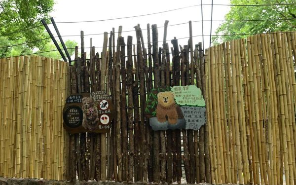 本次改造的核心在于对原有参观围栏进行了彻底的升级换代。规划建设科在新的参观面创新采用了玻璃、竹篱、树枝与木板相结合的复合设计:主体部分为通透的双层加胶钢化玻璃,确保游客拥有无障碍的观赏视野;玻璃两侧则巧妙地融入了天然竹篱、废弃树枝与防腐木板,既起到了必要的物理隔离作用,杜绝了游客投喂的隐患,又为展区增添了几分自然野趣,与熊山的生态环境相得益彰。